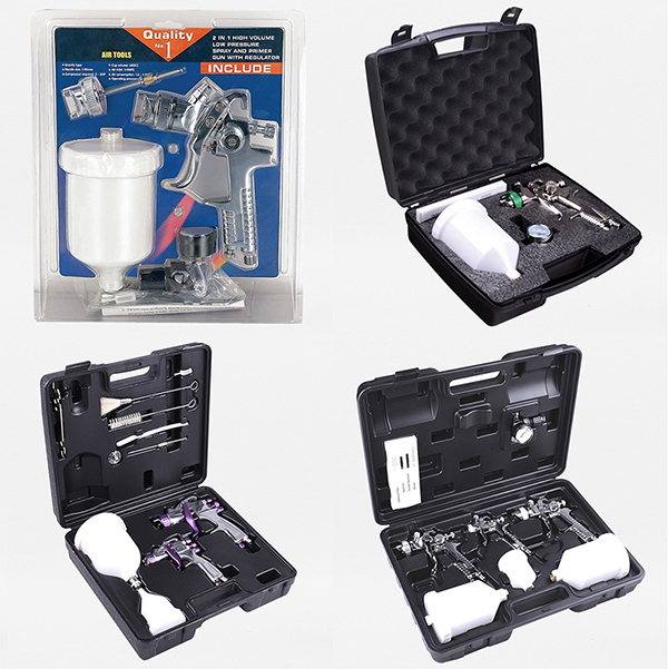V závislosti na různých potřebách nabízí sada vzduchových stříkacích pistolí několik možností specifikace balení. Ať už se jedná o malou opravu nebo velkou lakovací práci, můžete si vybrat správnou konfiguraci balení, která splní specifické požadavky různých stříkacích prací.